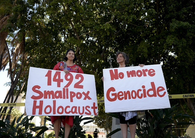 Columbus statues vandalized on US holiday named for him