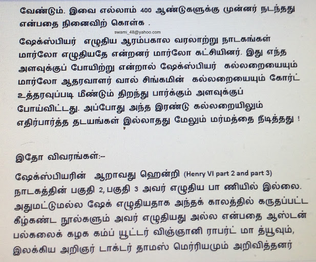 ஷேக்ஸ்பியர் ‘கள்ளக் காப்பி’ அடித்ததை காட்டிக் கொடுத்த கம்ப்யூட்டர் !ஷேக்ஸ்பியர் (Shakespeare) தான் அவர் பெயரில் உள்ள 37 நாடகங்களையும் எழுதினாரா ? அல்லது அவர் காலத்தில் புகழ் பெற்ற மற்றொரு ஆசிரியரான கிறிஸ்டோபர் மார்லோ (Christopher