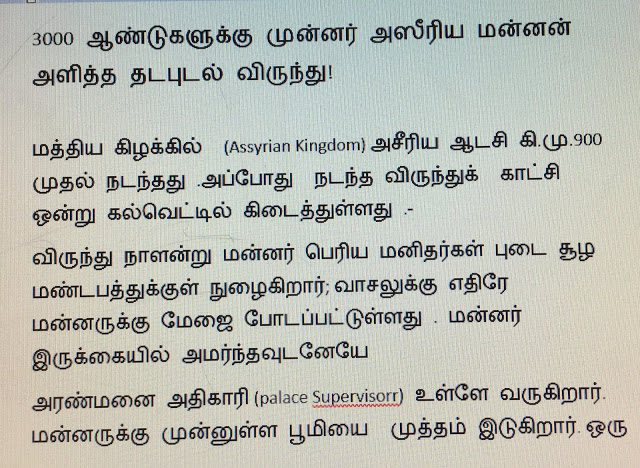 Tags அசீரியா , சுமேரிய , உணவு வகை , மன்னர் விருந்து