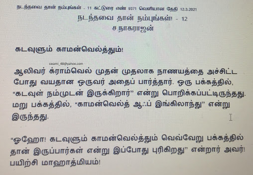 நடந்தவை தான் நம்புங்கள் – 11 கட்டுரை எண் 9371 வெளியான தேதி 12-3-2021