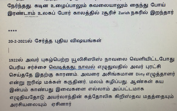 —இதை எழுதிக் கொண்டிருக்கையில் டாக்டர் குறுக்கிட்டார். “எழுத்தாளரே உமது புத்தியைக்காட்டிவிட்டீரே! உங்கள் வர்க்கமே சோறு கண்ட இடம் சொர்க்கம் என்னுமினம். நான் விருந்து கொடுத்தவுடன், என்னை இந்திரனே சந்திரனே என்று புகழ்ந்து தள்ளுகிறீர்களே!”