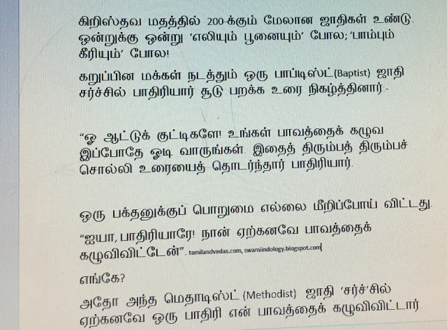 தங்கள் பக்கம் தோல்வி நிச்சயம் என்ற சூழ்நிலையில் அந்த பாதிரிமார்கள் இருவரும் மிக மோசமாக ஹிந்து மதத்தையும் ஹிந்துக்களையும் திட்ட ஆரம்பித்தனர். ஸ்வாமிஜி பொறுத்துப் பார்த்தார்.
