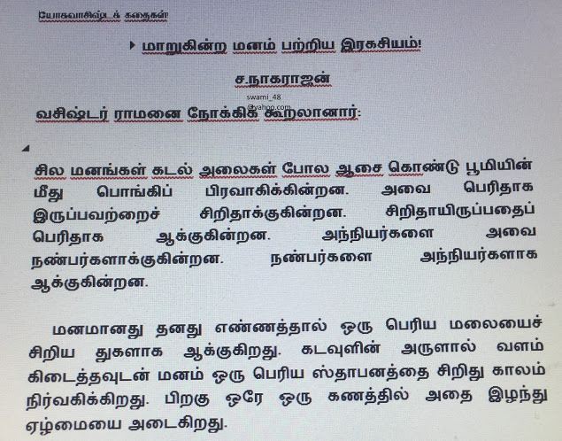 அருமையான இந்தக் கதை யோக வாசிஷ்டத்தில் உத்பத்தி பிரகரணத்தில் இடம் பெறுகிறது