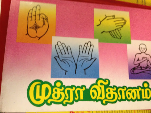 இப்பொழுது முத்திரைகளுக்கு வருவோம். முத்திரை என்பது விரல்கள், கைகள் மூலம் காட்டும் சமிக்ஞை ஆகும். இது உடலின் சக்தியை வழிப்படுத்தும் முறை அல்லது அதை அதிகரிக்கும் முறை ஆகும். அதுமட்டுமல்ல அதில் அக்குபிர்ஷர் எனப்படும் உத்தியும் உளது; உடலில் சிலபகுதிகளுக்கு அழுத்தம் கொடுத்தால் அது ஞானம் பெறுவதற்கான நரம்புகளைச் சுண்டி விடும்.