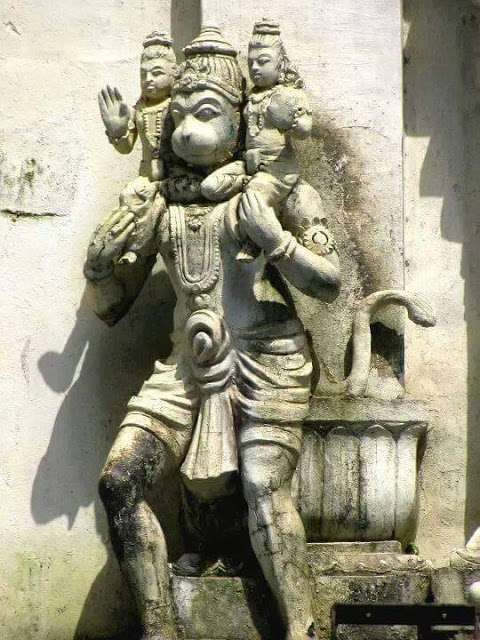 இலங்கையில் அசோகவனத்தில் சிறைவைக்கப்பட்ட சீதையிடம் அனுமன் தன் தோளிலேயே சுமந்து சென்று ராம பிரானிடம் ஒப்படைக்கிறேன் என்று சொன்னான். சின்னக் குரங்கு போல உள்ள அனுமனால் அதைச் சாதிக்க முடியுமா என்று சீதை சந்தேகப்பட்ட போது அனுமன் விஸ்வரூபம் எடுத்து ஓங்கி வளர்ந்து சீதைக்கு முன் நின்றான். அதைப் பார்த்து, அனுமனுக்கும் முன்னால் இப்படி வளர்ந்து விஸ்வரூப தரிசனம் எடுத்த திருமாலுக்கு வெட்கம் வந்து விட்டதாம்