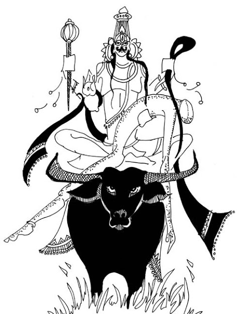 இந்துமதத்தில் இன்றுள்ள நம்பிக்கையை 2000 ஆண்டுகளுக்கு முன் நரிவெரூவுத்தலையாரும் பாடிவிட்டார். எருமை வாஹனம் உடையவன் என்பதும் புராணக் கருத்தாகும்.