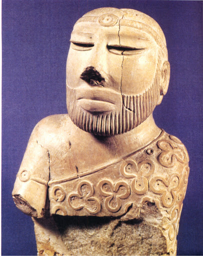 படம் 9: இவரை யோகி என்றும் மன்னர் என்றும் புரோகிதர் என்றும் வருணிப்பர். பூவாடை– பூக்கள் பொறித்த பொன்னாடை அணிந்து பிராமணர்கள் போல left தோளில் ஆடையை விட்டுள்ளார். ஆனால் இவருடையய முக க்ஷவரம் (Shaving style) இவரை மத்திய கிழக்கு பேர்வழி என்று காட்டுவதாக அறிஞர்கள் பகர்வர்.