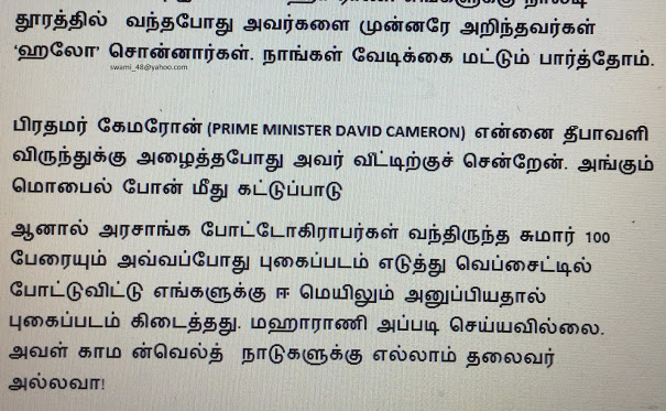 சிலர் அரசியைப் பார்க்க அல்லவா போகிறோம் என்று நல்ல நகைகளைப் போட்டுக் கொண்டு வந்தனர்!