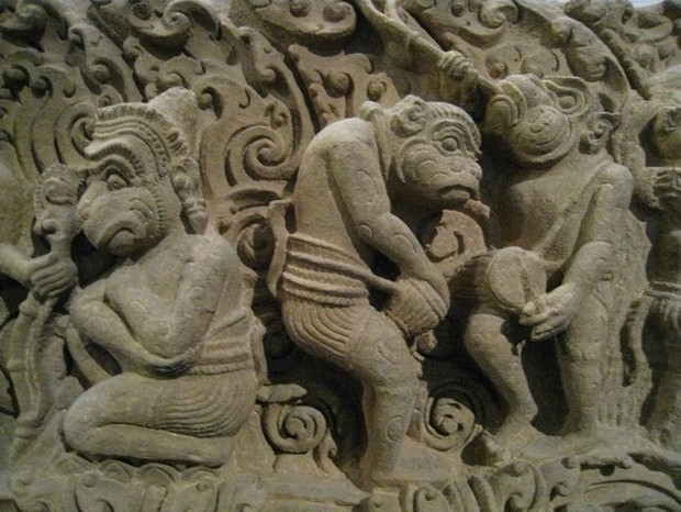 படம்6.காட்டில் சுபாஹு, மாரீசனென்ற இரண்டு அரக்கர்கள் யாகசாலை மீது தாக்குகின்றனர். உடனே ராமன், சுபாஹுவைக் கொல்கிறான். மாரீசனைக் கடலில் தொலைவில் தூக்கி எறிகிறான்.