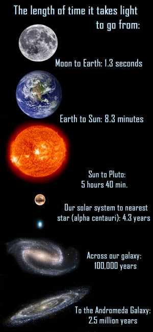 0.1056 வினாடியில் சூரிய ஒளி 9.09 மைல்கள் பயணப்படுகிறது.அப்படியானால் ஒரு வினாடியில் 1,89,547 மைல்கள் பயணப்படுகிறது என்று ஆகிறது!