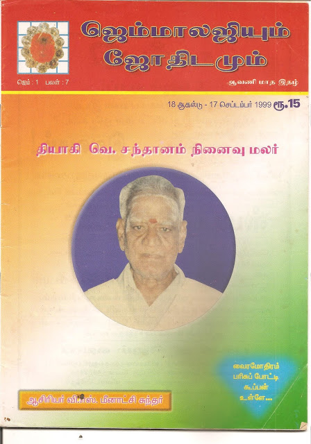 1998ஆம் ஆண்டு. ஆகஸ்ட் 15. எங்களது தந்தையார் மதுரை எல்லிஸ் நகரில் ‘கொடி ஏத்தியாச்சா’ என்று கேட்டு விட்டு அமரரான நாள். அவருக்கு எங்கள் அஞ்சலி! – வெ.சந்தானம் குடும்பத்தினர்!