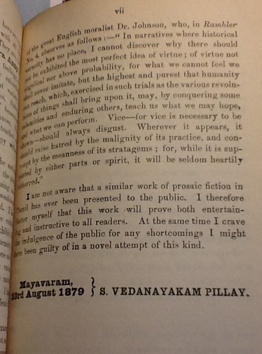 மடாதிபதியும், நீதிபதியும் பல மணி நேரம் கலந்துரையாடினர். பொழுது சாயும் வேளையில் மாட்டு வண்டியில் ஏறி வேதநாயகம் பிள்ளை மாயூரத்துக்கு விரைந்தார். வண்டிதான் முன்னே சென்றதே தவிர அவர் மனம் பின்னேயே சென்றது; அதாவது திருவாவடுதுறையை நோக்கியே எதிர்த் திசையில் போய்க்கொண்டிருந்தது.
