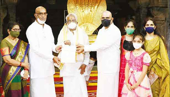 அந்தக் காணிக்கையை திருமலை-திருப்பதி தேவஸ்தான அறங்காவலர் குழு தலைவர் ஒய்.வி.சுப்பாரெட்டி திருப்பதி ஏழுமலையான் கோவிலில் உள்ள ரெங்கநாயக்கர் மண்டபத்தில் வைத்து பெற்றுக்கொண்டார். அந்தப் பக்தருக்கு திருப்பதி ஏழுமலையான் கோவிலில் சாமி தரிசன ஏற்பாடுகளை அதிகாரிகள் செய்து வைத்தனர்.