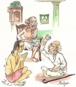 ‘என்ன, ஸ்வாமி, சௌக்கியமா? ‘என்று கம்பீரத் தொனியுடன் கேட்டான். அவனது குரலில் இருந்த மாறுபாட்டைக் கவனித்ததும் நான் ஹிருதயனிடம், இவனுக்கு ஏதோ பணம் கொஞ்சம் கிடைத்திருக்கும் போலிருக்கிறது. என்ன மாறுதல் உண்டாகி இருக்கிறது, பார்த்தாயா? என்றேன். ஹிருதயன் விலா வலிக்கச் சிரித்தான்.