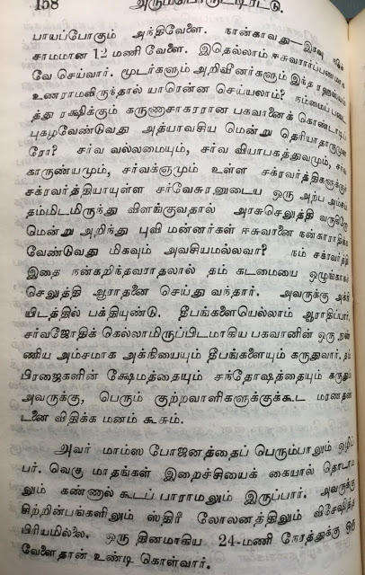 7.அவருக்கு சிற்றின்பத்திலும் ஸ்த்ரீலோலனத்திலும் விருப்பமில்லை. 24 மணி நேரத்தில் ஒரு முறை மட்டுமே உணவு உண்பார்.
