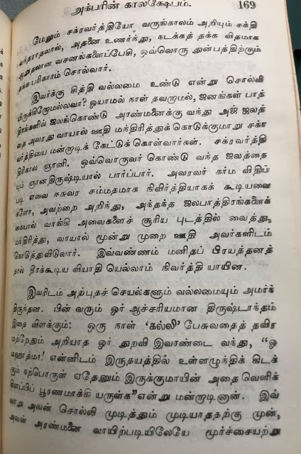 29.அவர் வெகு வினயத்தோடு தத்துவ சாஸ்திரங்களைப் பெரிய ஞானிகளோடு விவாதிப்பார். அக்பருடைய அத்தனை தெய்வீக லீலைகளையும் எழுத இங்கு இடமில்லை. நான் மட்டும் உயிருடன் இருந்தால் அவைகளை தனி புஸ்தகமாகவே எழுதுவேன்.