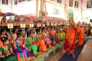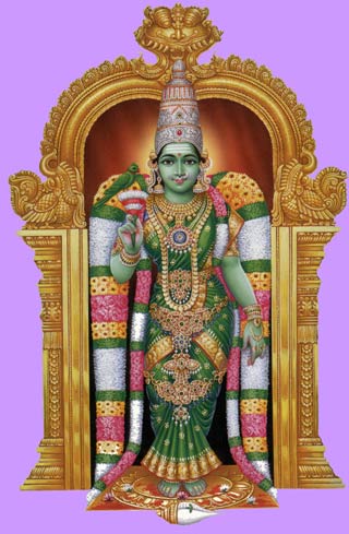 “Meenakshim ,Madhureswareem, Sukhatharam Sri Pandya Baalaam Bhaje” =Salutations to Goddess Meenakshi, goddess of Madurai, who has a parrot in her hand, who is the daughter of Pandya king.