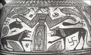 Picture of Greek Goddess Artemis with birds and Hindu Swastika symbol, 700 BC