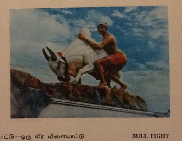 The bull fighting must not be regarded as like the familiar bull-fighting in Spain, or any other western country. This fight is called ‘sallikattoo’, and takes place during the day.