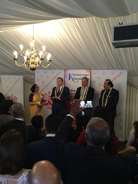 Lord Dholakia mentioned about the 39 dead bodies that were found on the day and asked all the Hindus to pray for the departed souls (39 immigrants from East European countries died mysteriously in the frozen compartment of a lorry). He asked Hindus to come forward and take part in politics. He praised the law-abiding Hindus and said even inside the prisons we find very few Hindus where as Muslims occupy 25 percent.