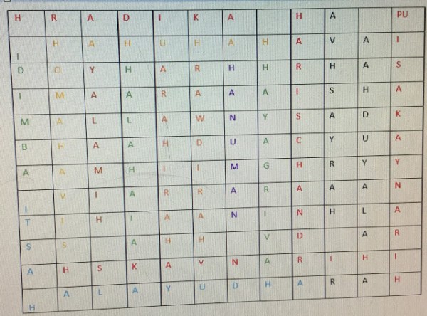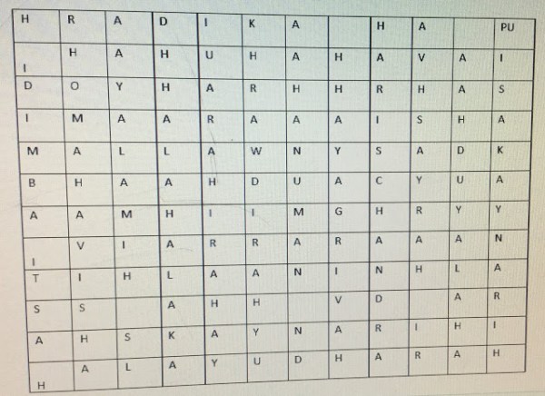 | H | A | L | A | Y | U | D | H | A | R | A | H |
