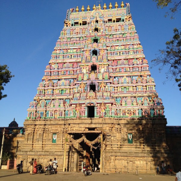 The sculptures at the gate show several dancing postures, which reminds one of Chidambaram temple.