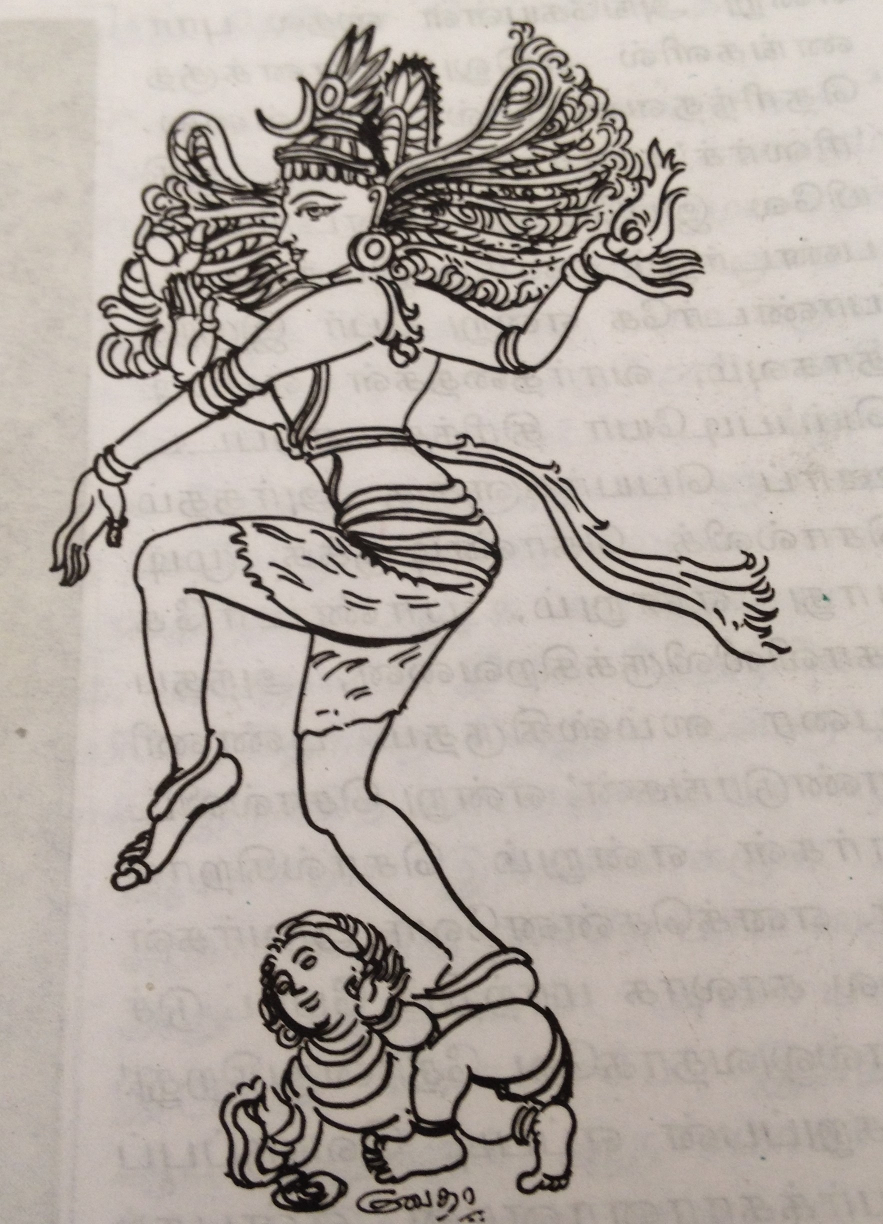 Shiva’s two sons are Ganesh and Kartikeya (Skanda/Murugan) . He is easily identifiable because of his Spear and his vahana- the peacock. He is shown with his two wives Valli and Deivanai in some places. Also shown with six heads and 12 hands in Tamil books.