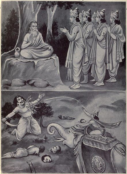 Picture shows Saint Dadhichi and Indra killing demon Vritra
