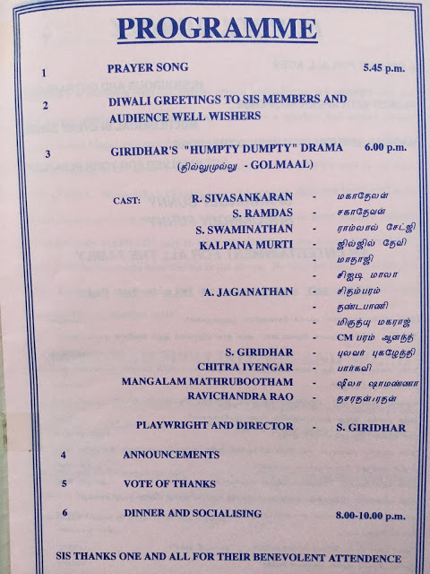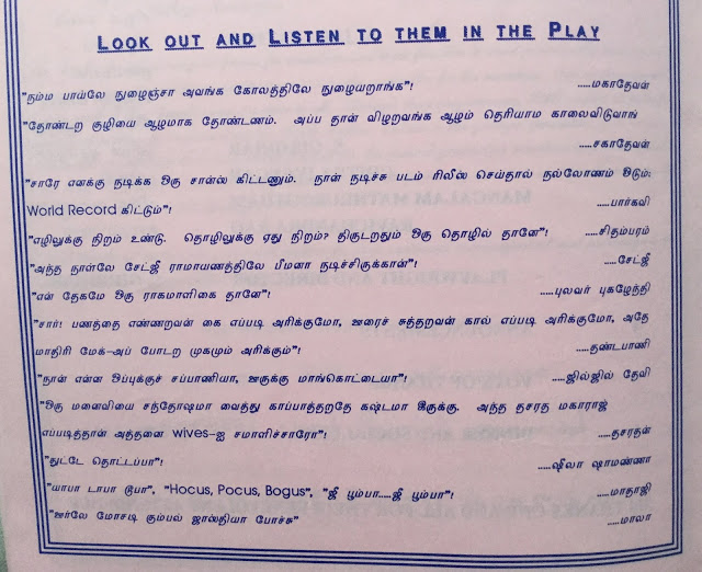 The pictures haven’t got many details. I see only one caption dated 9th July 1983 titled Tamil Comedy ‘Saamiyaarin Maamiyar’ at Bhavan. (Literally translated it would be ‘Mother in Law of an Ascetic’)